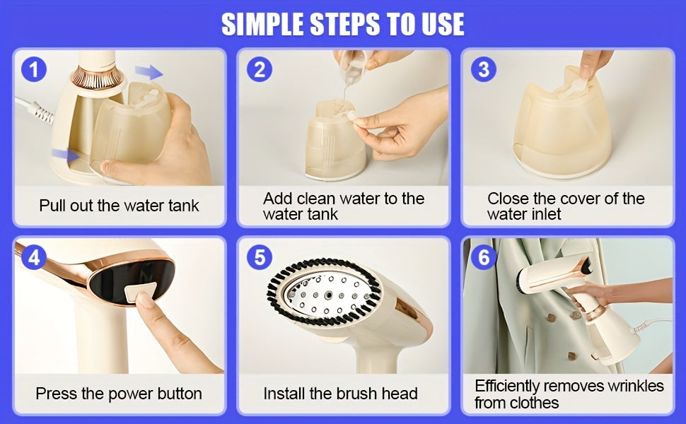 Działa bezpośrednio na 220–240V z europejską wtyczką – nie musisz martwić się ładowaniem. Para jest mocna i stabilna przez cały czas pracy.